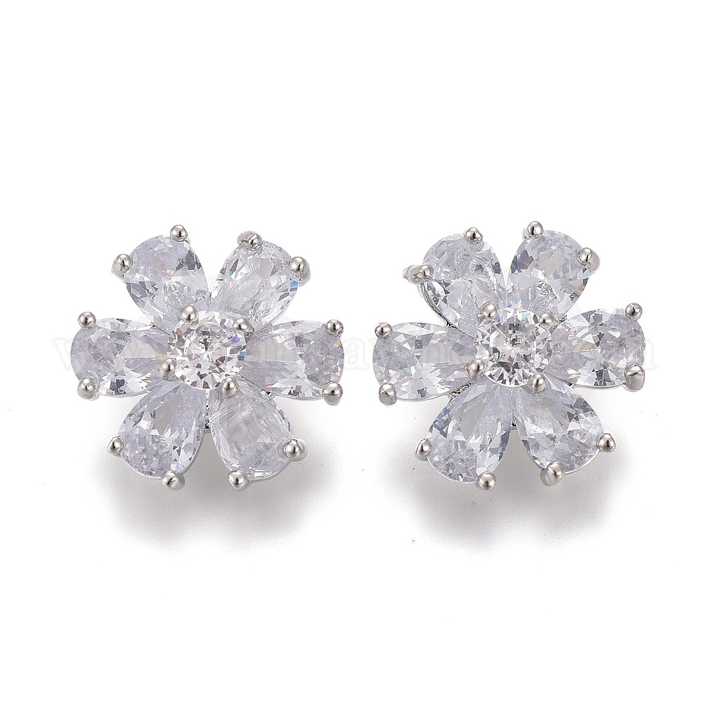 Пуговицы на хвостовике из латуни с микропейвом и прозрачным кубическим цирконием, цветок