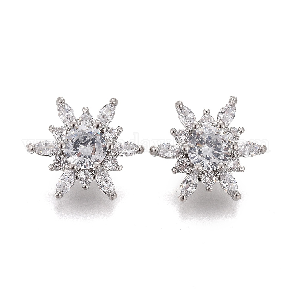 Пуговицы на хвостовике из латуни с микропейвом и прозрачным кубическим цирконием, цветок