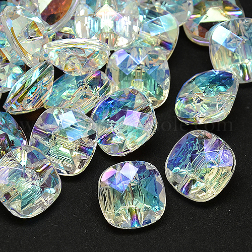 Тайвань акриловые кнопки горный хрусталь, граненые, 1-луночное, квадратный