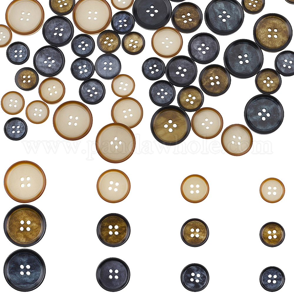 72шт. 4 стили 4-отверстие смоляные кнопки, плоско-круглые