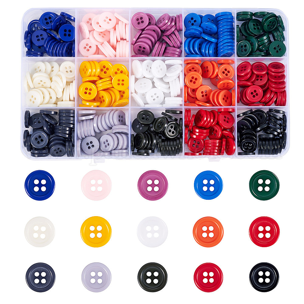 450шт 15 стили смоляные кнопки, плоско-круглые (0333F7)