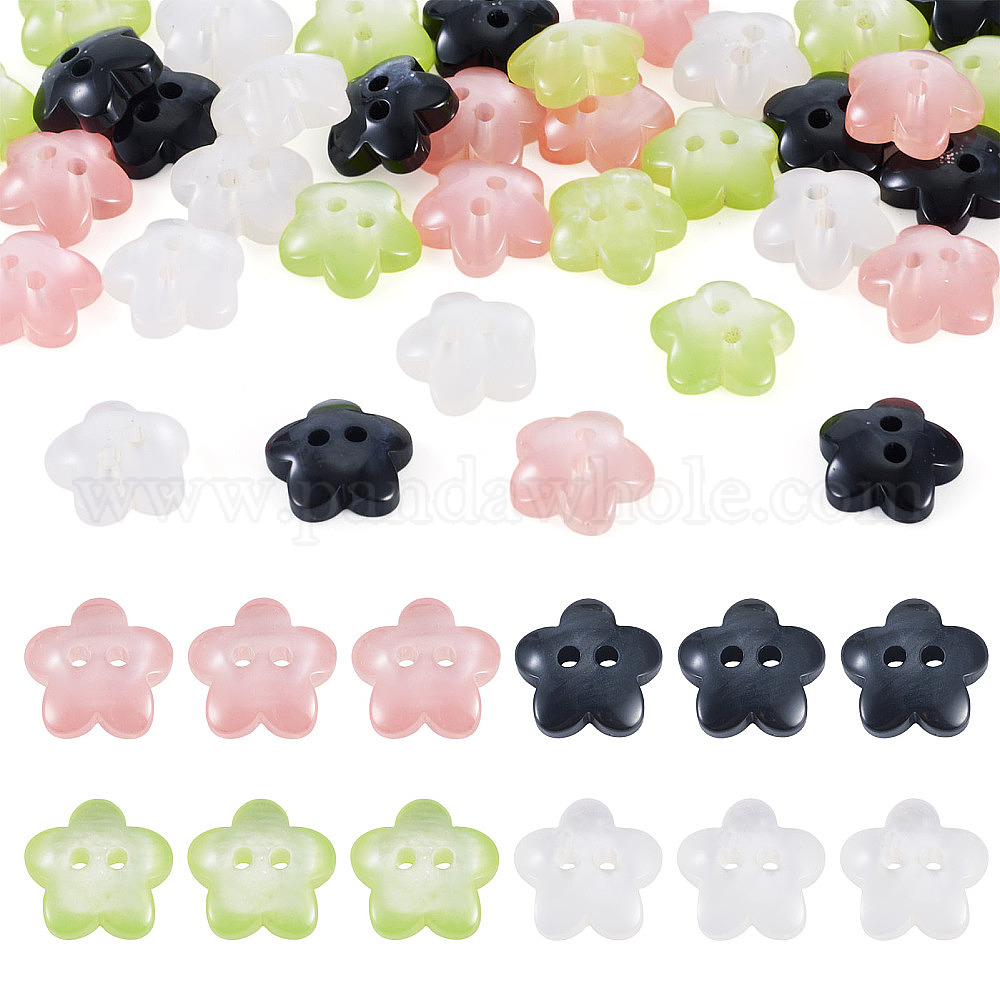40 шт 4 цвета 2 пуговицы из пластмассы с отверстиями, цветок