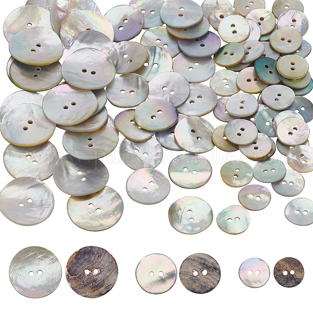 3 пуговицы из натуральной ракушки акойя, 2-луночное, плоско-круглые