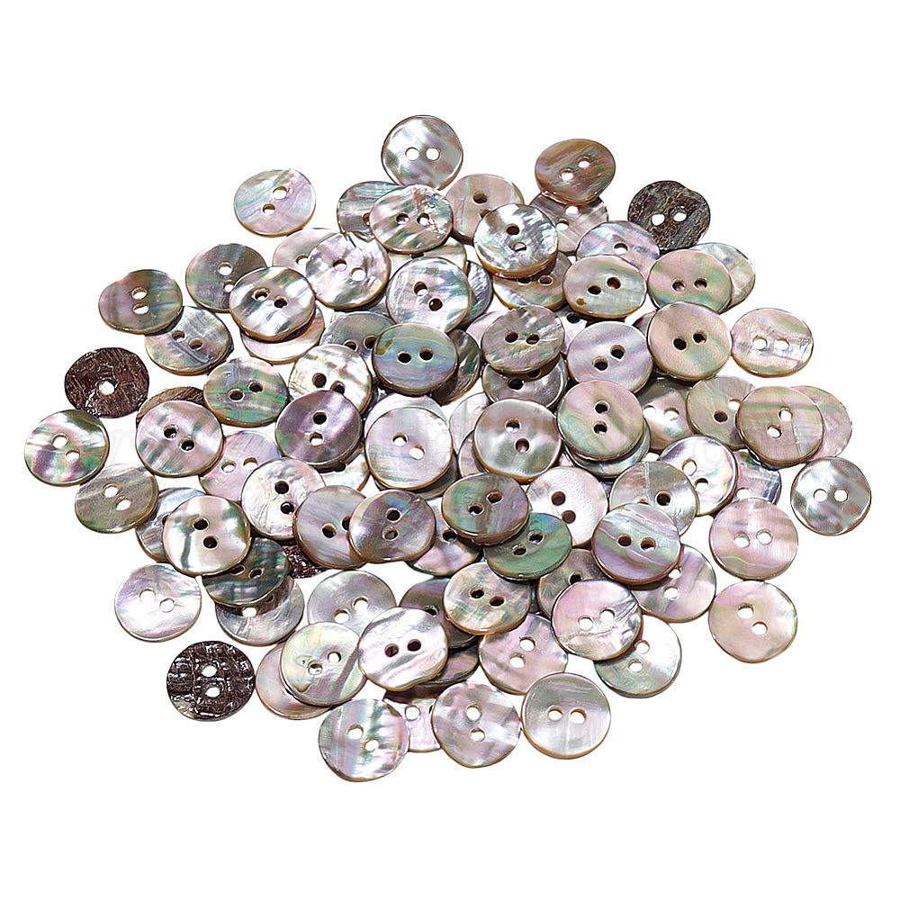 100 шт. пуговицы из натуральной ракушки пауа, 2-луночное, плоско-круглые