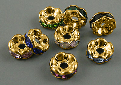 • Кристалл Латунные бусины разделители для поставки стразов, класс А, волнистый край, сырой (без покрытия), без никеля , рондель, кристалл, 10x4 мм, отверстие : 2 мм