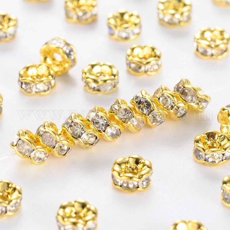 Латунные бусины разделители для поставки стразов, класс AAA, волнистый край, без никеля , золото , рондель, 4x2 мм, отверстие : 1 мм