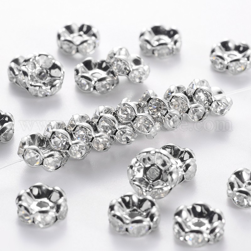 Латунные бусины разделители для поставки стразов, класс AAA, волнистый край, без никеля , Платиновый металл, рондель, 8x3.8 мм, отверстие : 1.5 мм