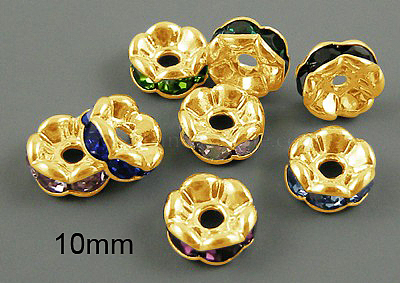 Латунные бусины разделители для поставки стразов, класс AAA, волнистый край, без никеля , золото , рондель, 10x4 мм, отверстие : 2 мм