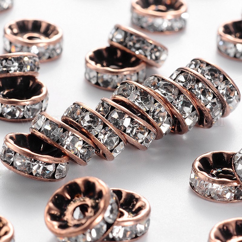 Латунные бусины разделители для поставки стразов, класс AAA, прямой фланец, Красный цвет металлической меди, рондель, 10x4 мм, отверстие : 2 мм
