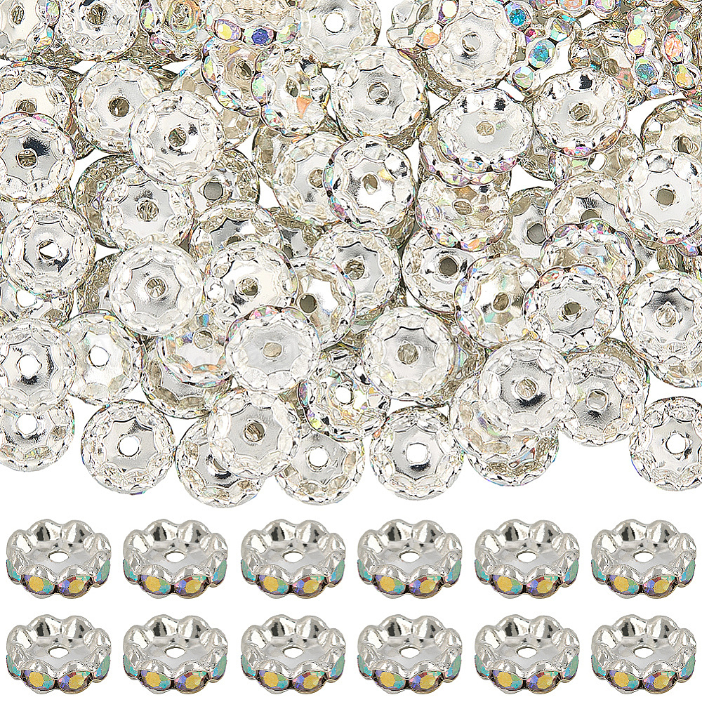 120 шт. Латунные бусины-распорки со стразами, класс А, волнистый край, рондель