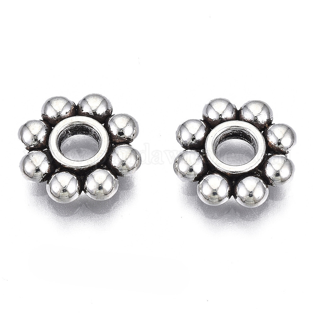 • Античное Серебро Тибетский стиль сплава ромашка разделительные бусины, без кадмия и без свинца, цветок, античное серебро, 10x2 мм, отверстие : 2.5 мм, Около 1900 шт / 1000 г