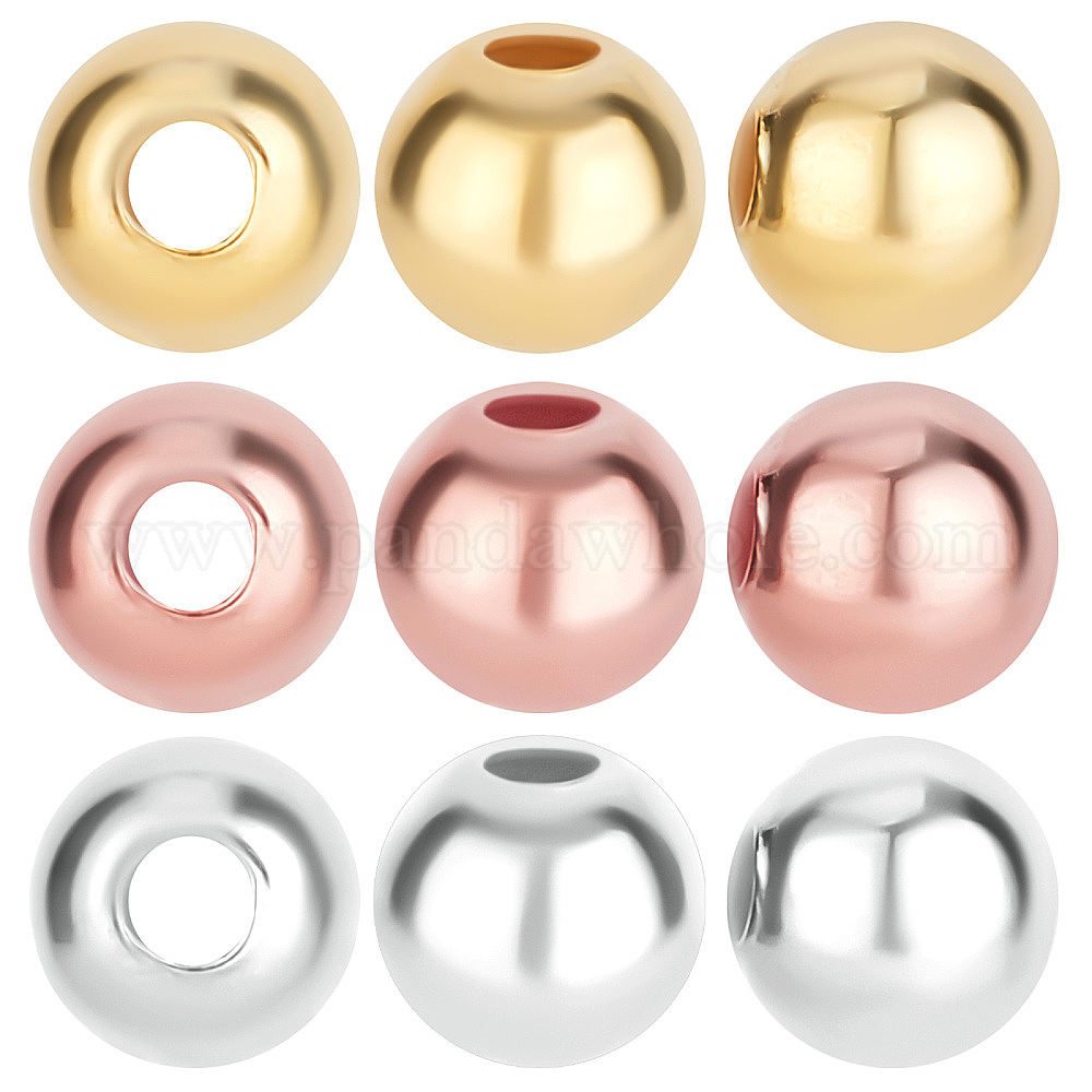 круглые 925 разделительные бусины из стерлингового серебра: около 4 мм в диаметре, отверстие : 2 мм, 3 цветов, 10 шт / цвет, 30 шт;