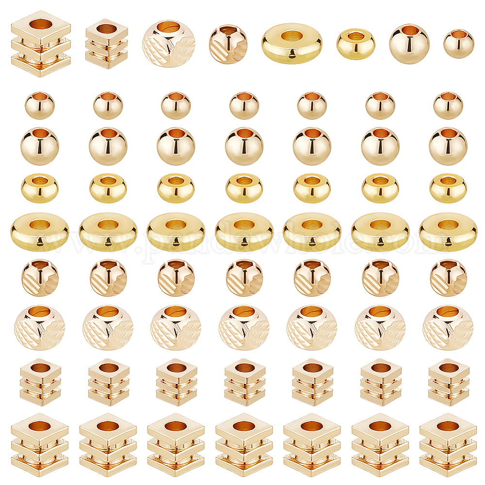 • Золотой 160 шт. 8 стили латунные бусины-проставки, без никеля , куб, рондель и толстый круглый, золотые, 3~6x1.5~4 мм, отверстие : 1.2~2 мм, 20 шт / стиль
