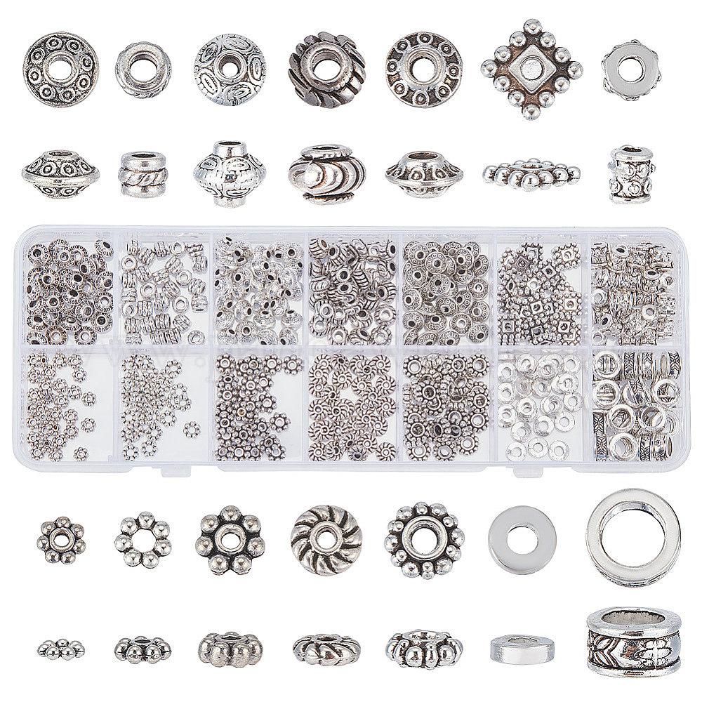 420 шт 14 стили разделительные бусины в тибетском стиле, пончик и квадрат и ромашка, разнообразные