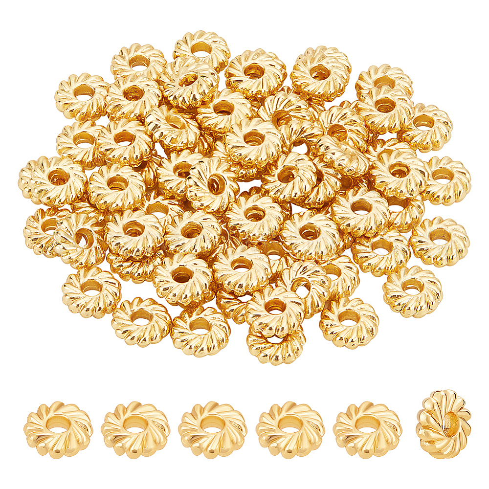 • Настоящее золото 18K 100шт. сплава проставки бусины, без кадмия и без свинца, цветочный диск, реальный 18 k позолоченный, 8x2.5 мм, отверстие : 2 мм