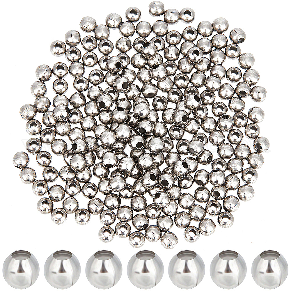 • Нержавеющая Сталь Цвет Круглые 316 хирургические дистанционные бусины из нержавеющей стали, цвет нержавеющей стали, 3 мм, отверстие : 1 мм, 800 шт / коробка