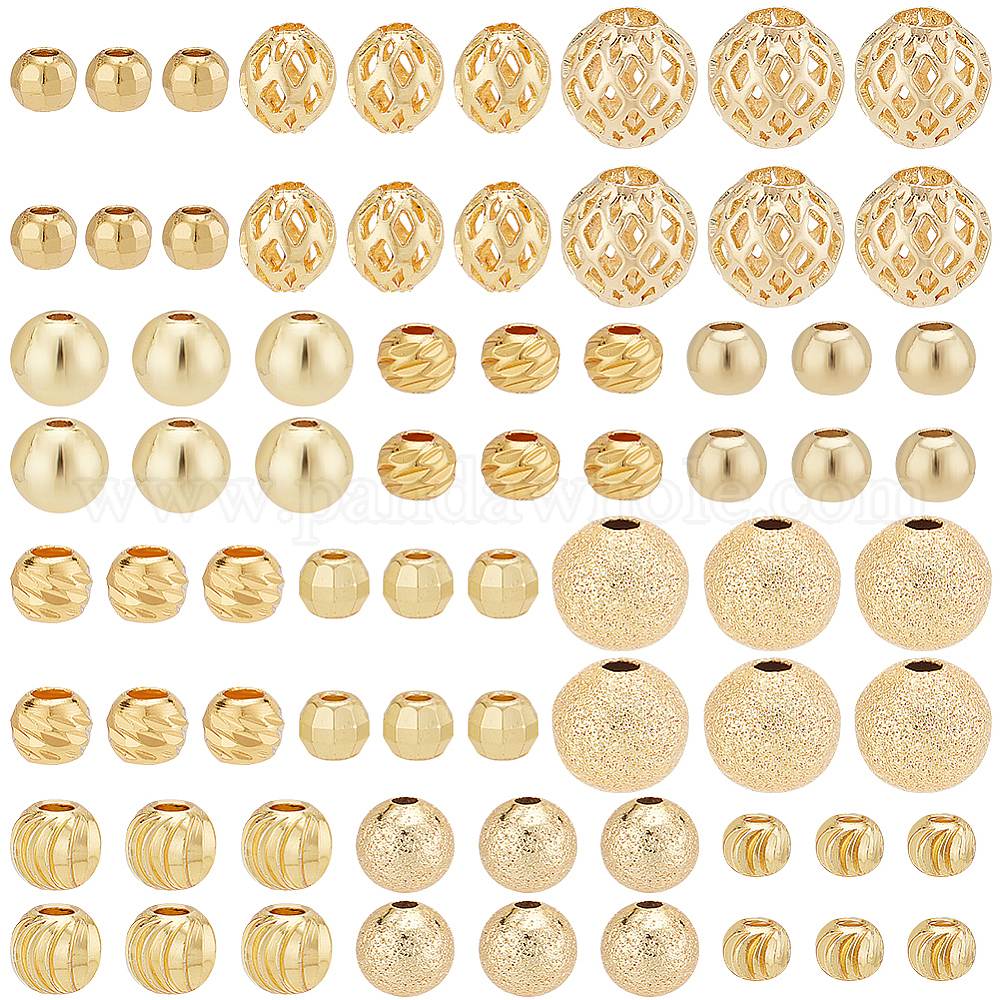 • Настоящее золото 18K 120шт. 12 стили латунные и сплавные разделительные бусины, круглые, реальный 18 k позолоченный, 3.5~8x3~7.3 мм, отверстие : 2~6 мм, 10 шт / стиль