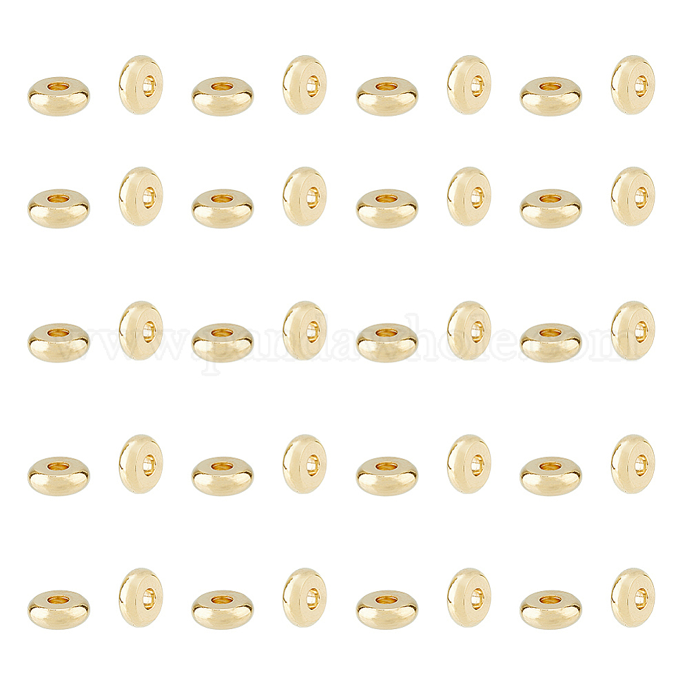 • Настоящее золото 24K 80 шт. 304 распорные втулки из нержавеющей стали, плоско-круглые, реальный 24 k позолоченный, 6x2 мм, отверстие : 1.8 мм