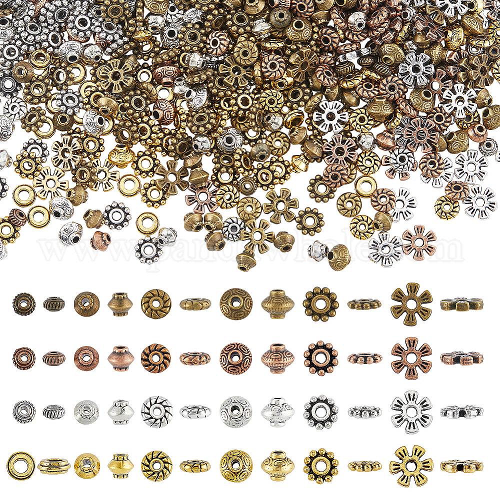 1200шт 24 стили тибетский стиль сплава разделительные бусины наборы, двухконусный, цветочный и плоский круглый, разнообразные