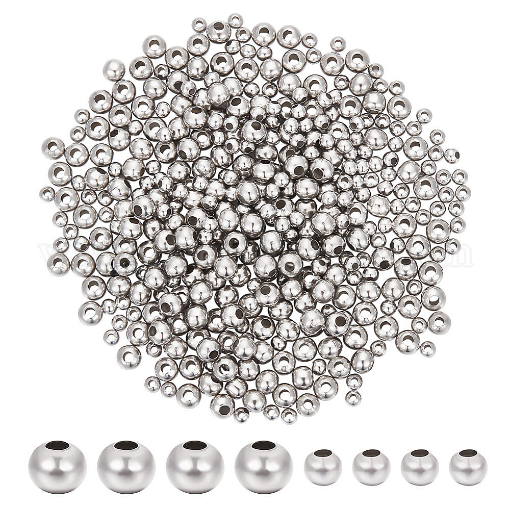 • Нержавеющая Сталь Цвет 400 шт. 2 стиль круг 304 разделительные бусины из нержавеющей стали, металлические находки для поставок ювелирных изделий, цвет нержавеющей стали, 4~6 мм, отверстие : 1.5~2 мм, 200 шт / стиль