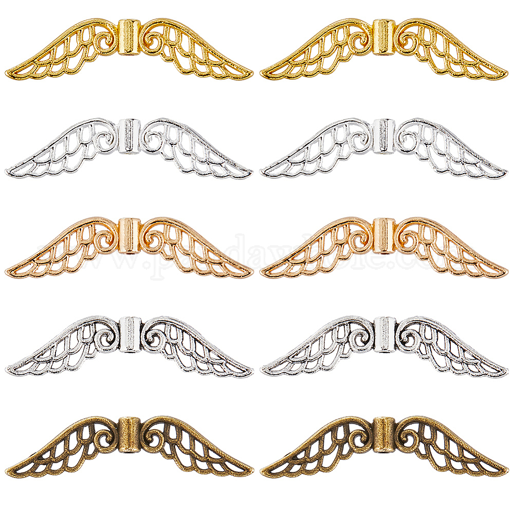 100шт 5 цвета тибетского сплава разделительные бусины, ангельские крылья