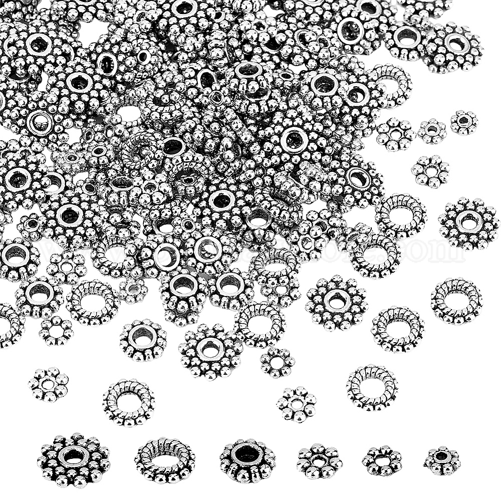 300 шт 6 стиль бусины-распорки сплава тибетского стиля, гранулированные бусины