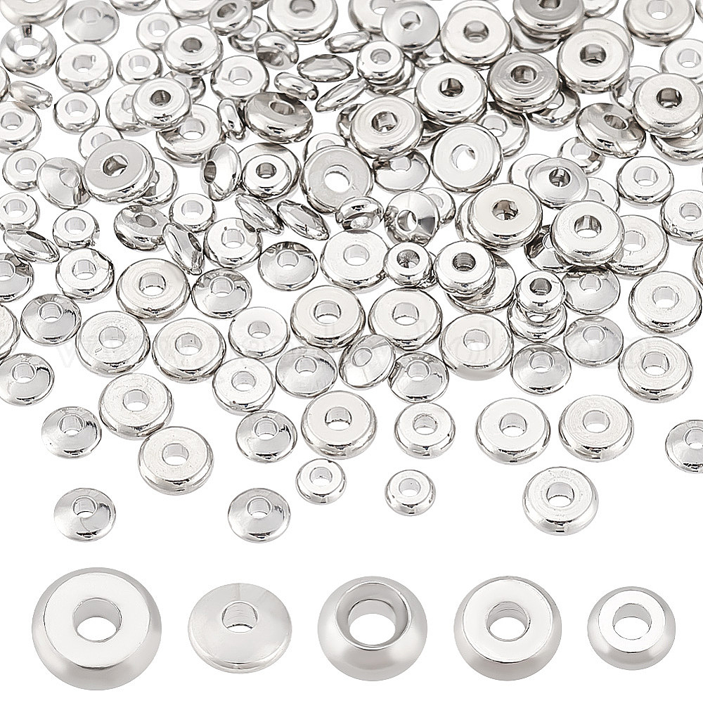 • Платинированный 200 шт. 5 стили латунные бусины-проставки, плоско-круглые, Реальная платина, 4~6x1.5~3 мм, отверстие : 1.5~2 мм, 40 шт / стиль