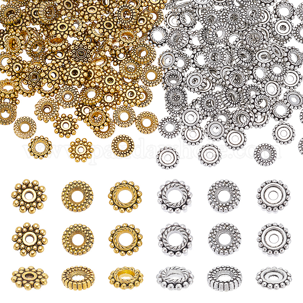 6 стили тибетский стиль сплав разделительные бусины, плоский круг и снежинка