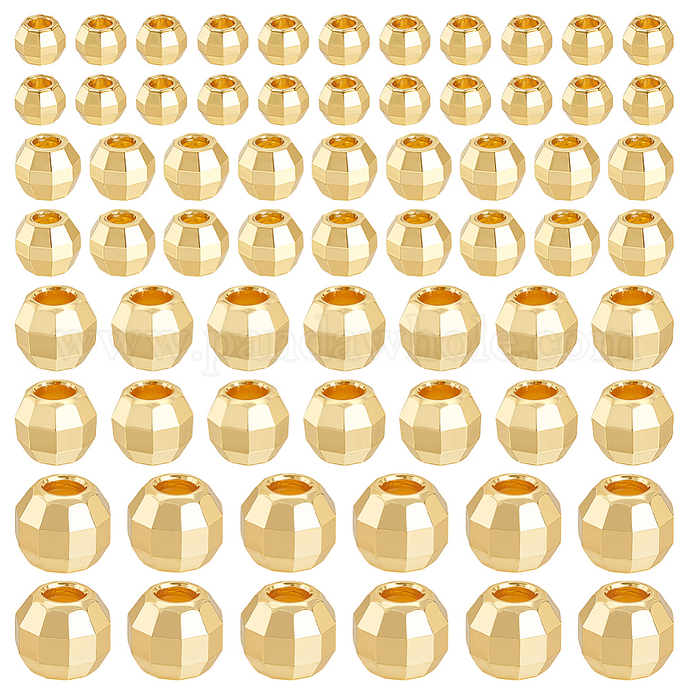 160 шт. 4 стили латунные бусины-проставки, круглые, граненые