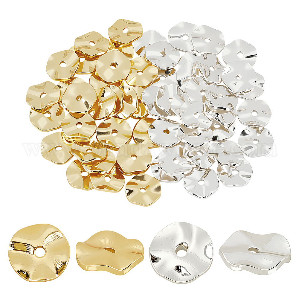 60 шт. 2 цвета латунных дистанционных бусин, волнистых плоские круглые