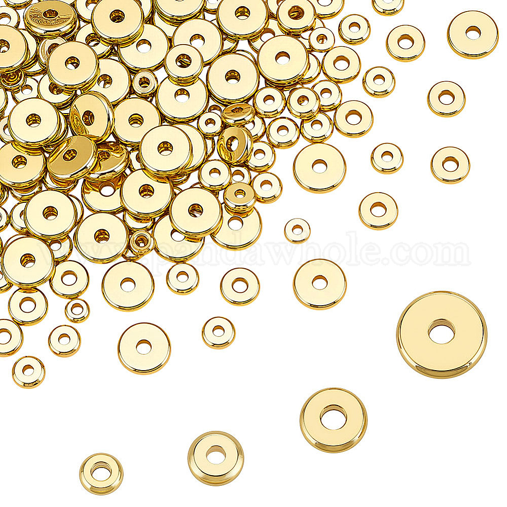 • Золотой 160 шт. 4 стили латунные бусины-проставки, долговечный, Плоский круглый / диск, Heishi бусы, золотые, 4~7x1.5 мм, отверстие : 1.6~1.8 мм, 40 шт / стиль
