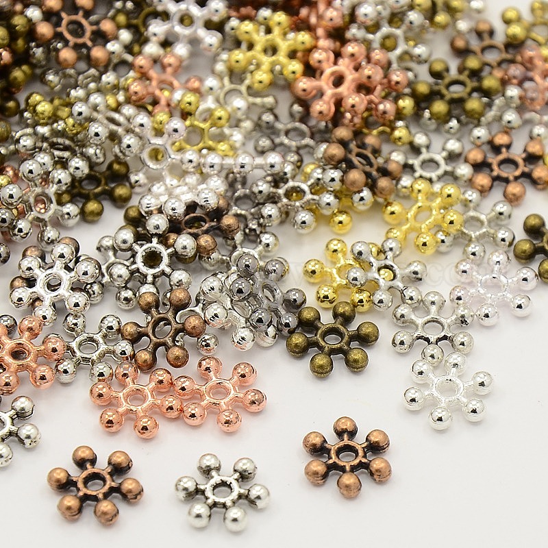 Шарики проставки снежинки сплава тибетского стиля смешанные, 8.5x2.5 мм, отверстие : 1.5 мм, Около 1040 шт / 200 г (033EDP)