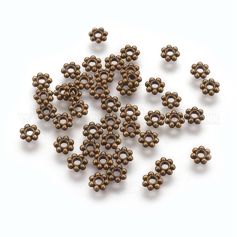 Бусины тибетского стиля , без кадмия и без свинца, цветок, 4x1 мм, отверстие : 1 мм