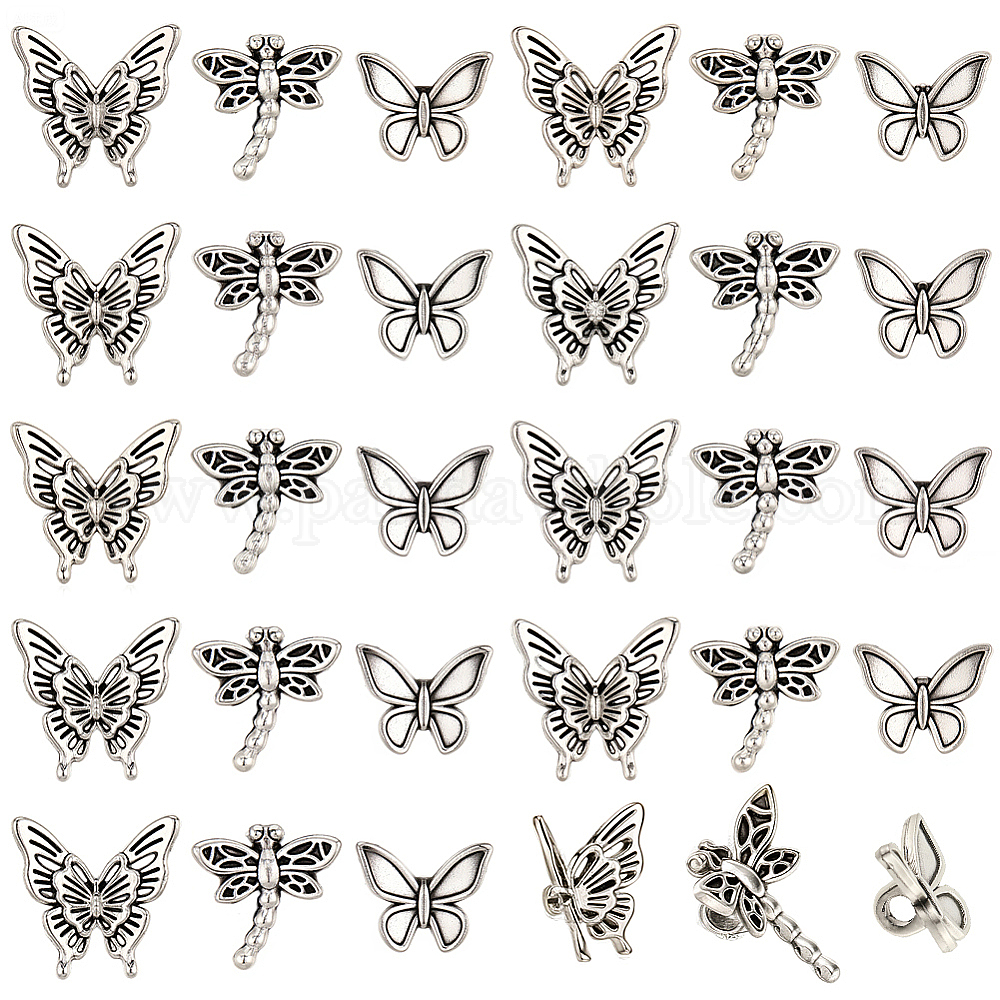 120Проставочные бусины из сплава в тибетском стиле, Бабочка и стрекоза
