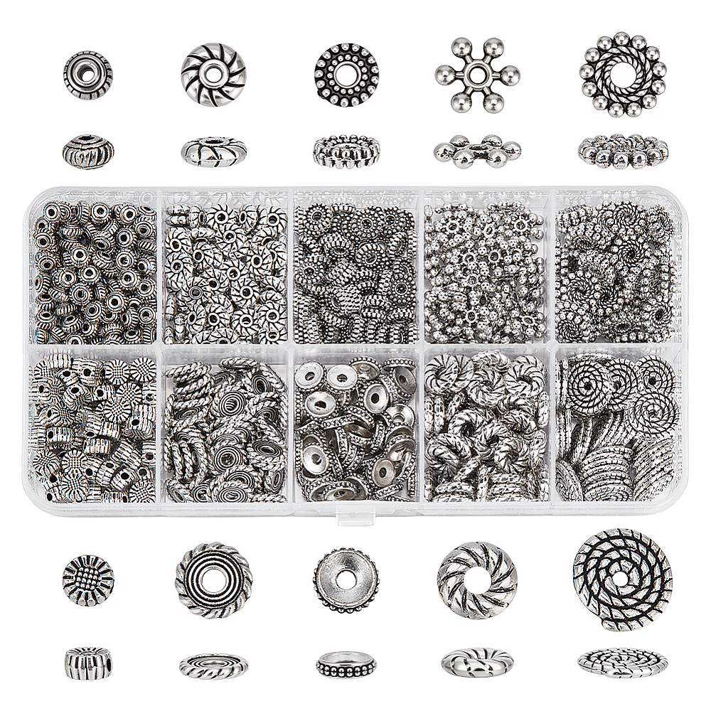 • Античное Серебро 670 шт 10 стили разделительные бусины в тибетском стиле, разнообразные, античное серебро, 5~10x1.5~3 мм, отверстие : 1~2 мм