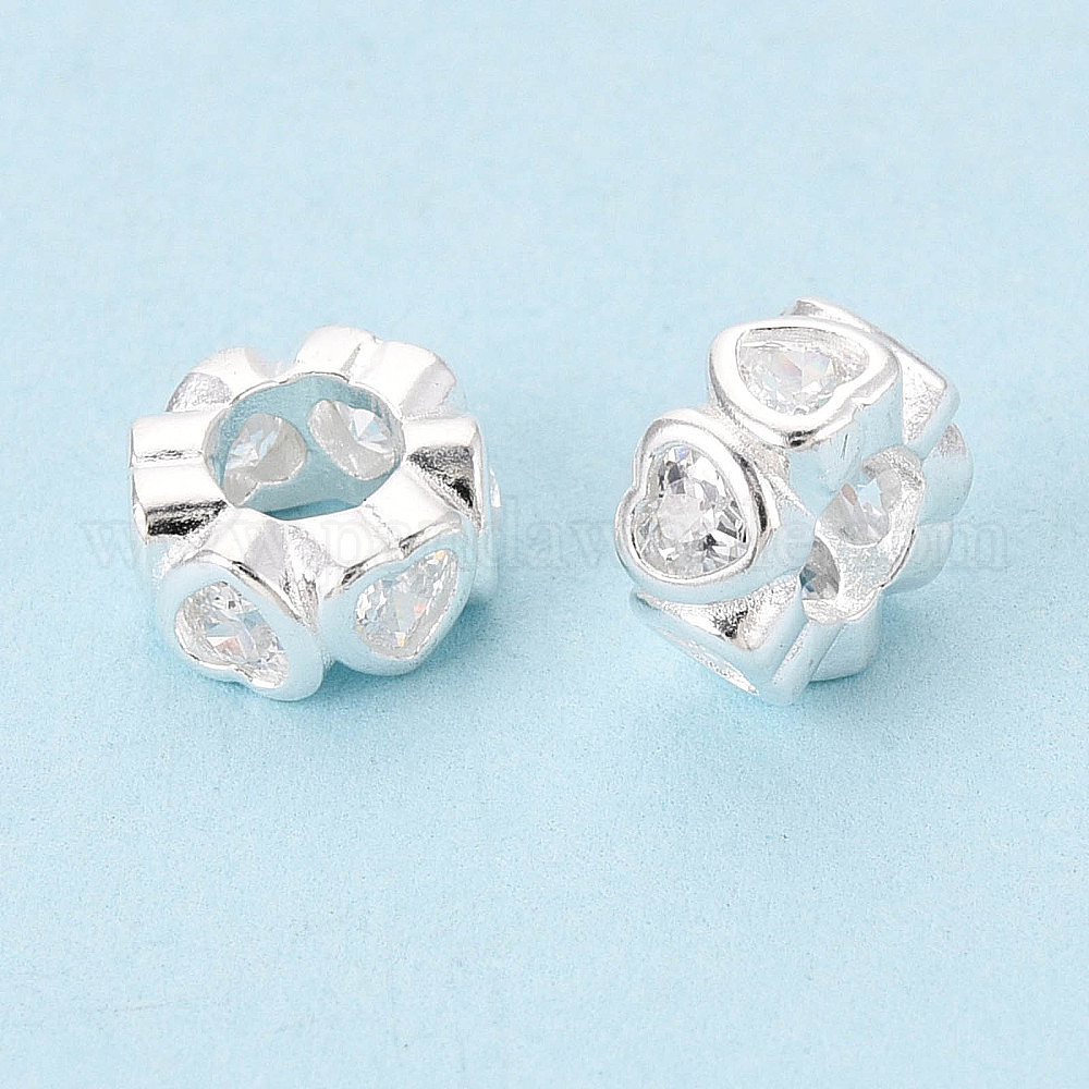 • Серебро 925 бусины-разделители из чистого серебра с кубическим цирконием, сердце, серебряные, 7x3.5 мм, отверстие : 3.8 мм
