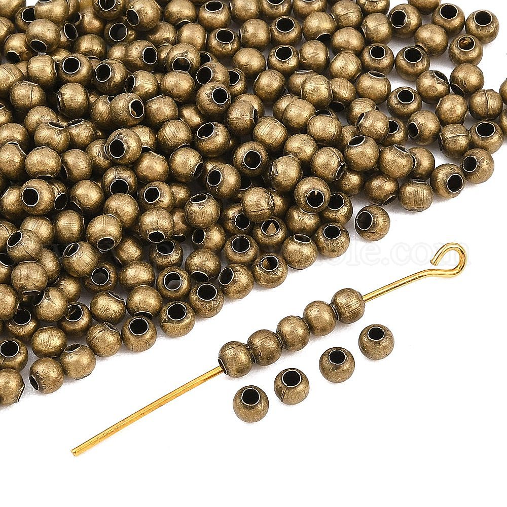 • Античная Бронза Spacer бисер железа, круглые, античная бронза, 3x3 мм, отверстие : 1.2 мм, Около 20000 шт / 1000 г