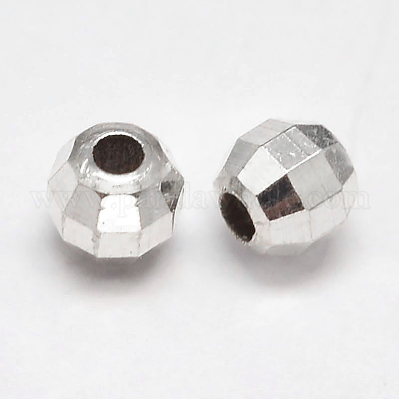 • Серебро Граненый круглые 925 серебро бусы, серебряные, 2 мм, Отверстие : 0.8 мм , около 1000 шт / 20 г