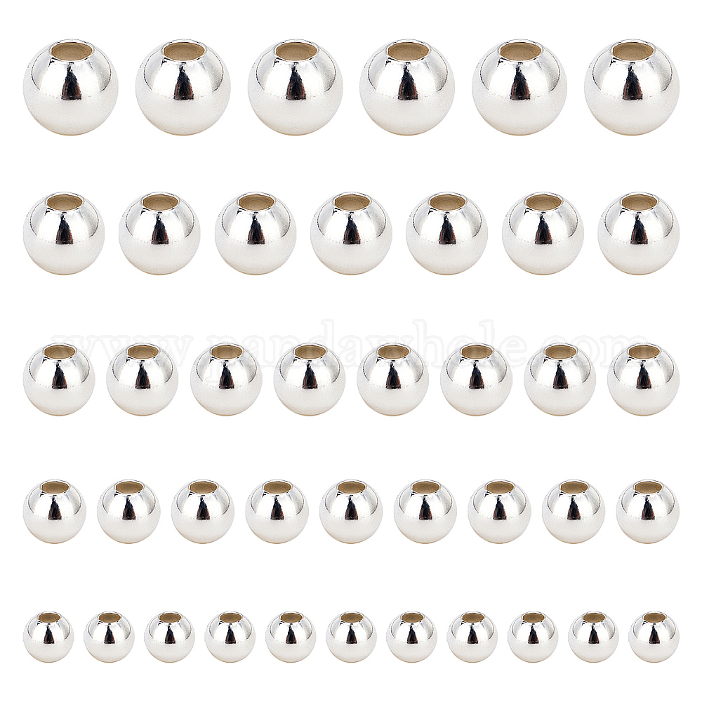 • Серебро Латунные гладкие круглые бусины, распорные швы со швом, серебряные, 2.4~6 мм, отверстие : 0.8~3 мм