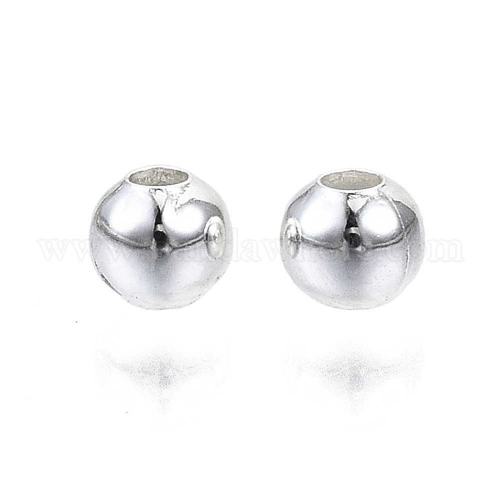 • Серебро Латунь круглый шарики прокладки, без свинца, без кадмии и без никеля, серебряные, 3 мм, отверстие : 1 мм, Около 4998 шт / 50 г