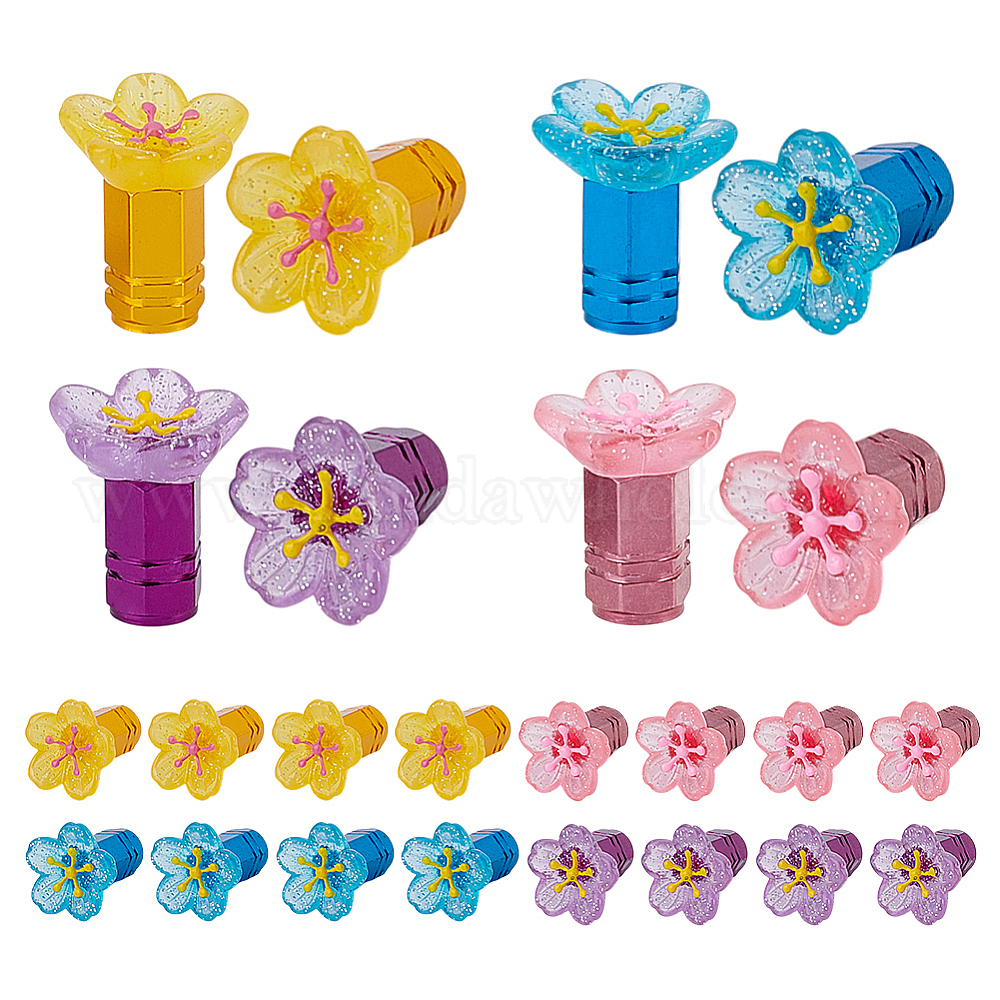 16 шт. 4 цвета смоляные цветы и алюминиевые колпачки для вентилей шин