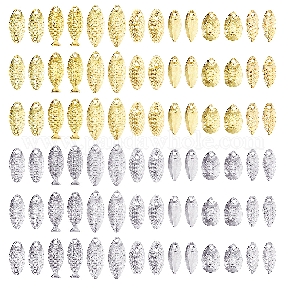 рыба: 15.5x6x1.5мм, отверстие : 1 мм, 30 шт / цвет, 2 цветов, 60шт;