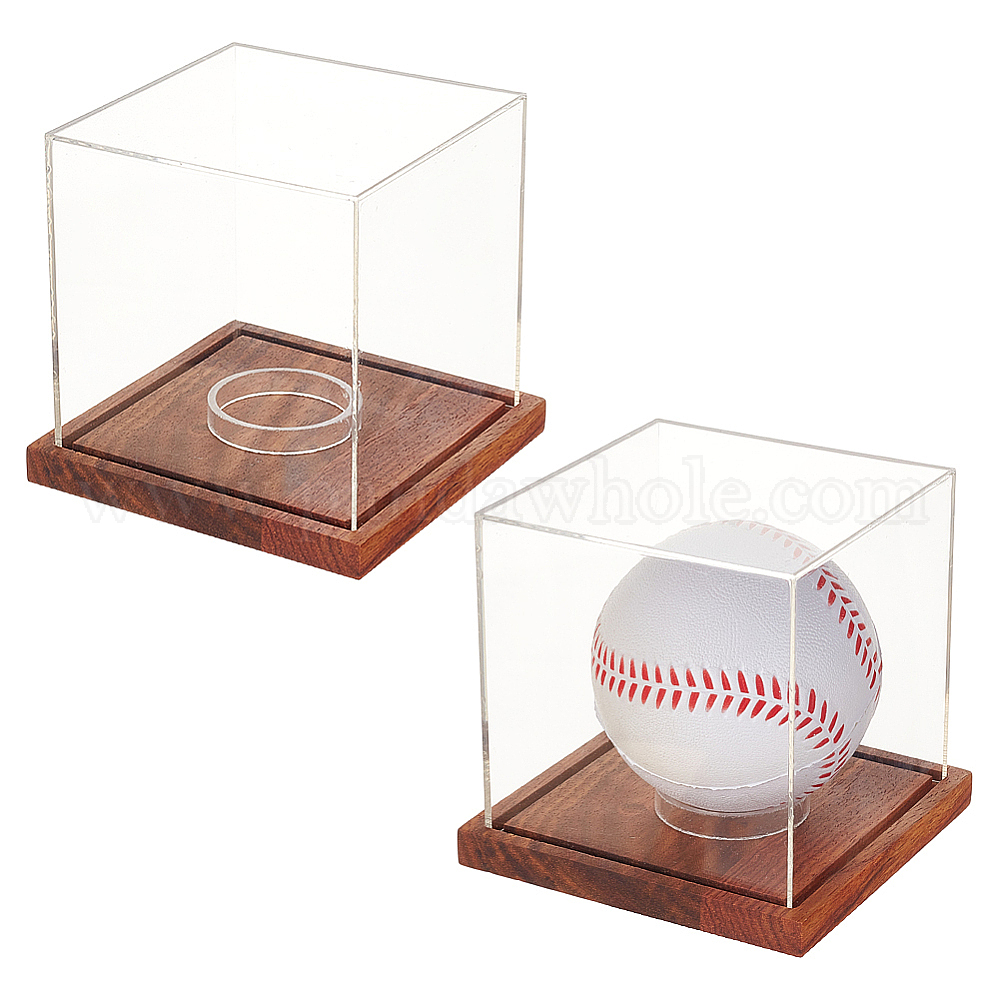 2шт. кубическая акриловая витрина, кейс для хранения бейсбольных мячей, с дерева базы