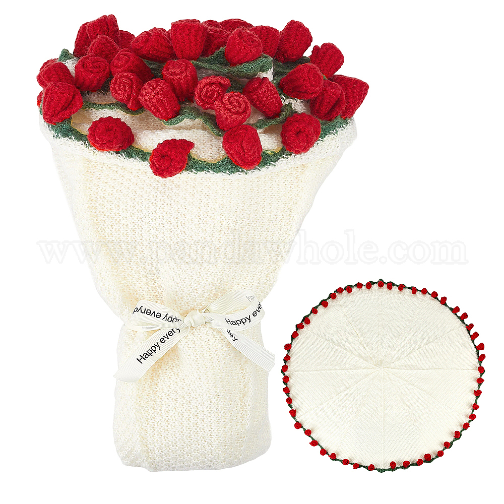 Вязаный крючком плед с букетом роз из шерстяной пряжи