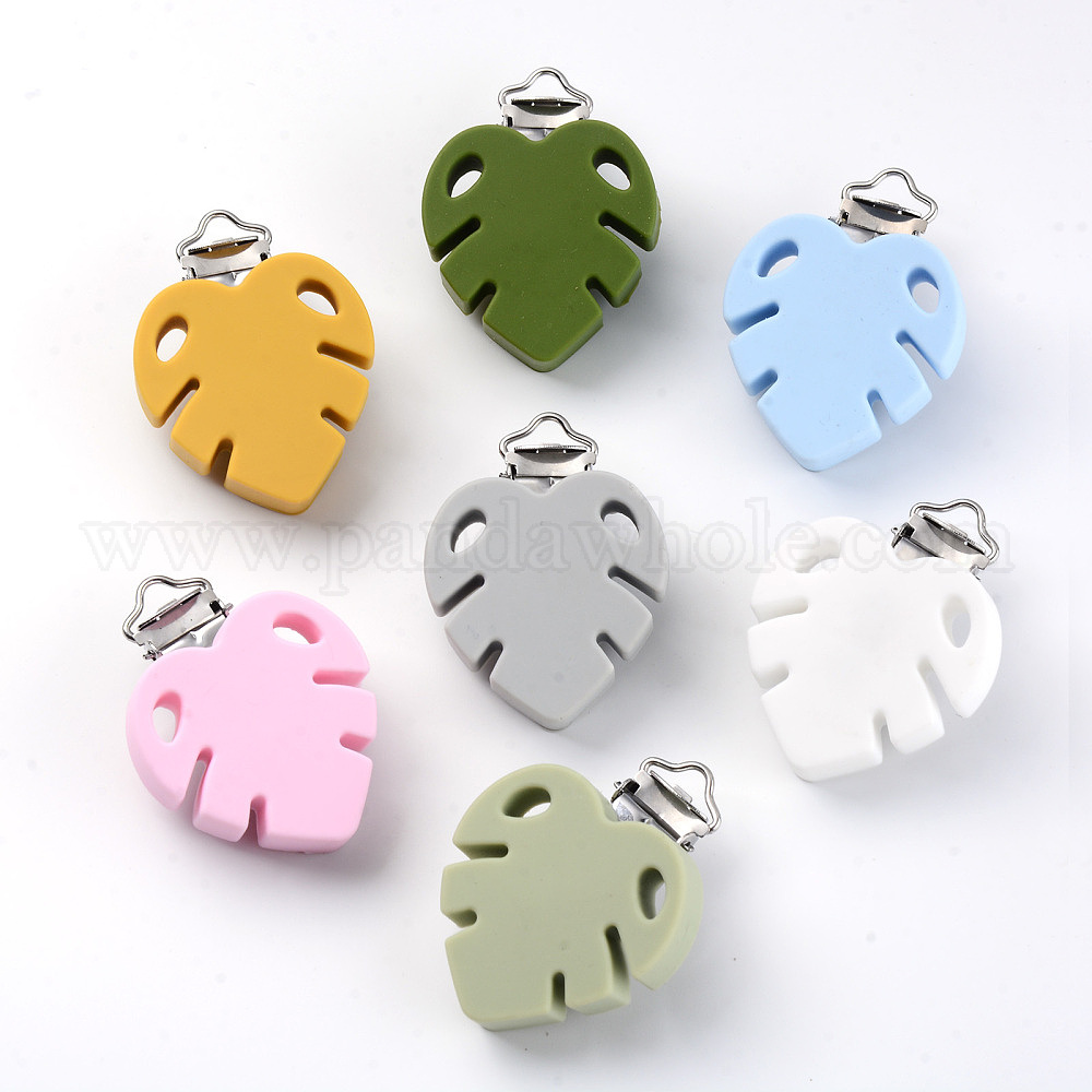 • Светло-зеленый Коричневый Пищевые экологически чистые силиконовые зажимы для детской соски, с 304 зажимами из нержавеющей стали, лист, цвет нержавеющей стали, оливковый, 54x38.5x21 мм, отверстие : 4x13 мм
