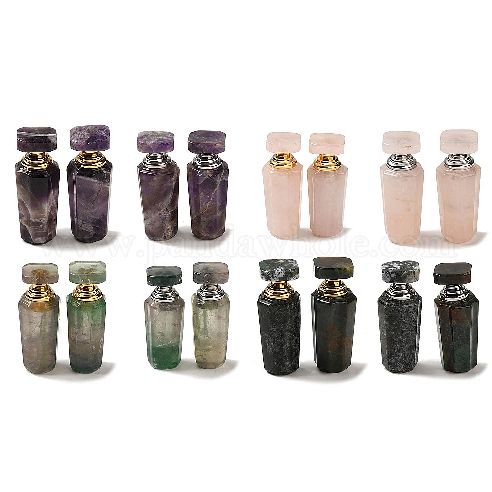 • Флюорит Флаконы для духов с капельницей из натурального флюорита, с золотой тон 304 выводы из нержавеющей стали, спа ароматерапия эфирное масло пустая бутылка, 2.2~2.35x2.2~2.35x6.9~7 см