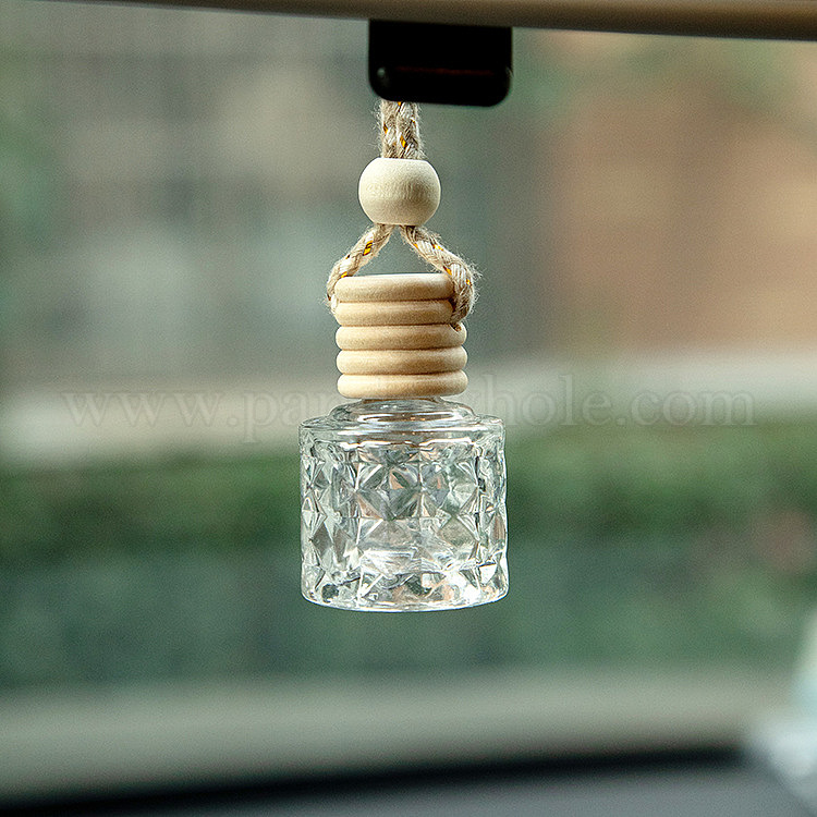 Стеклянная колонна, пустой многоразовый автомобильный флакон для духов, Автомобильный подвесной диффузор для ароматических масел, бутылка, подвески, декор, с деревянной крышкой