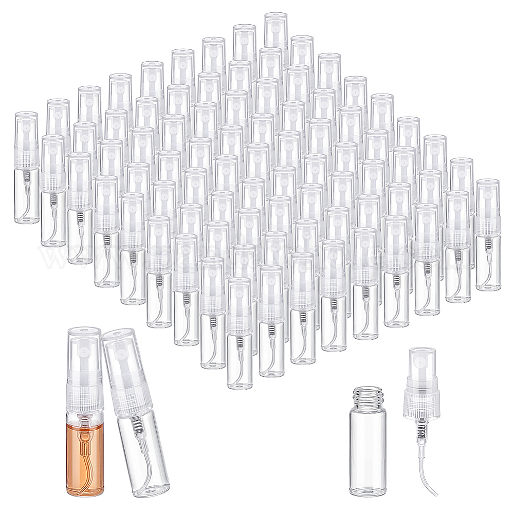 • Прозрачный 100шт стеклянный распылитель, с крышкой из полипропилена, для эфирного масла, духи, прозрачные, 60x14 мм, мощность: 3мл