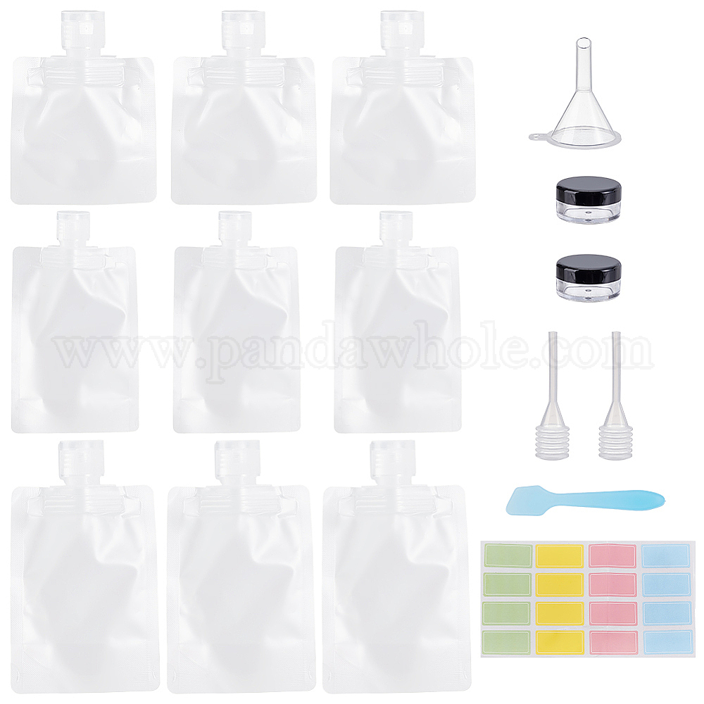 Полипропиленовый пластик, портативный дорожный пакет для жидкости, прозрачный пластиковый пустой упаковочный пакет., с пластиковой воронкой, ложкой, пипеткой и баночкой для крема., Водонепроницаемые пустые наклейки из ПВХ