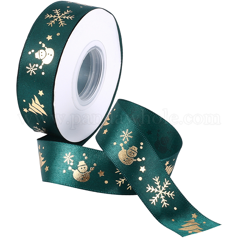 • чирок 1 рулон ленты из полиэстера с рождественским принтом, плоский, зелено-синие, 1 дюйм (25 мм), около 25.00 ярдов (22.86 м) / комплект